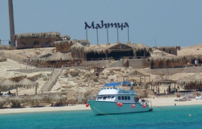 - The tour starts by picking you up from your hotel. Then, you'll be taken to the marina where you'll get on a nice boat for your fun day ahead. The boat has everything you need. You'll sail towards Mahmya Island and see beautiful views of the coast. It's going to be an exciting day!